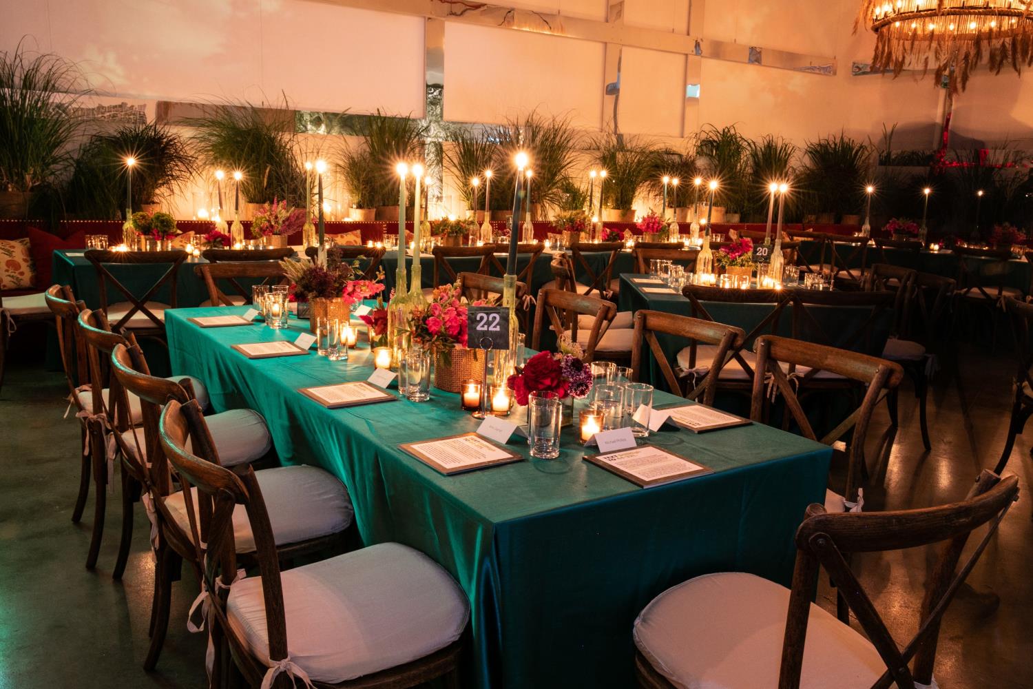 From stainless steel risers and embossed wooden serving trays to majestic teal linens and antique farm chairs, our team provided the perfect blend between a rustic garden party and an elegant gala.